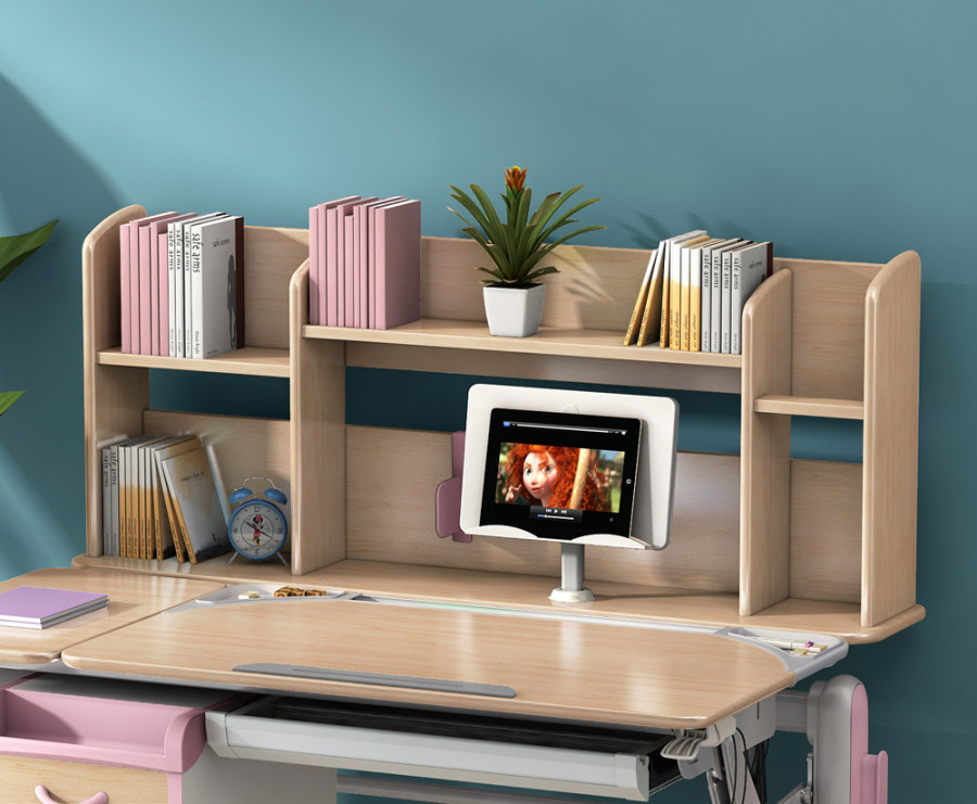 ??另一方面,隨著孩子年齡増長,學習任務越來越多,房間里就會堆滿學習資料、課外輔導書、各類文具、筆記本等等。我們都知道臟亂的環境不利于孩子靜心學習,也容易養成孩子東西亂放的壞毛病。所以家長應該根據孩子的不同學習需求,増加相應的儲物空間,比如増加書柜或者書架,分門別類存放孩子的圖書。好學童學習桌充分發揮了收納的作用,桌面合理分區增加了收納空間,多層書架能夠放下孩子從小到大的資料。